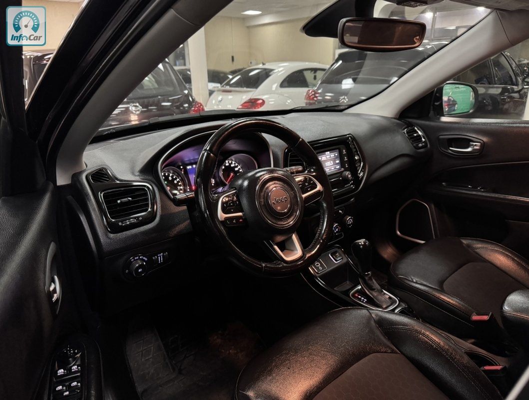 Jeep Compass 2.4і 16V 6АКПП 2018 р.в. (180 к.с.) , шкіряний салон, круїз контроль, кондиціонер, підігрів сидінь, підігрів дзеркал, електро регулювання дзеркал, електро скло підйомники, мультикермо, підсилювач керма, регулювання керма по висоті, регулювання сидінь по висоті, датчик дощу, датчик світла, денні ходові вогні, протитуманні фари, центральний замок, безключовий доступ, система контролю мертвих зон, парктронік, камера заднього огляду, тонування скла, штатна мультимедійна аудіосистема, Bluetooth, ABS, ESP, Airbag, привід - передній, вид палива - бензин, витрата палива - 9.4л/100км.