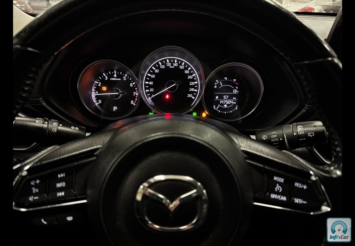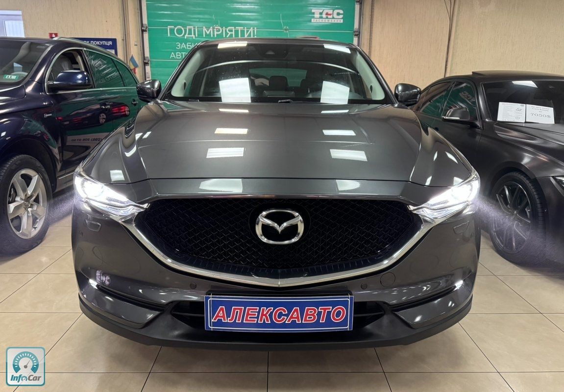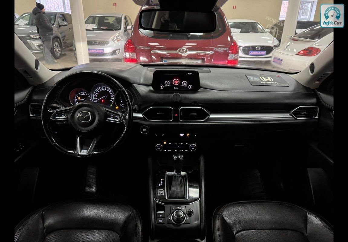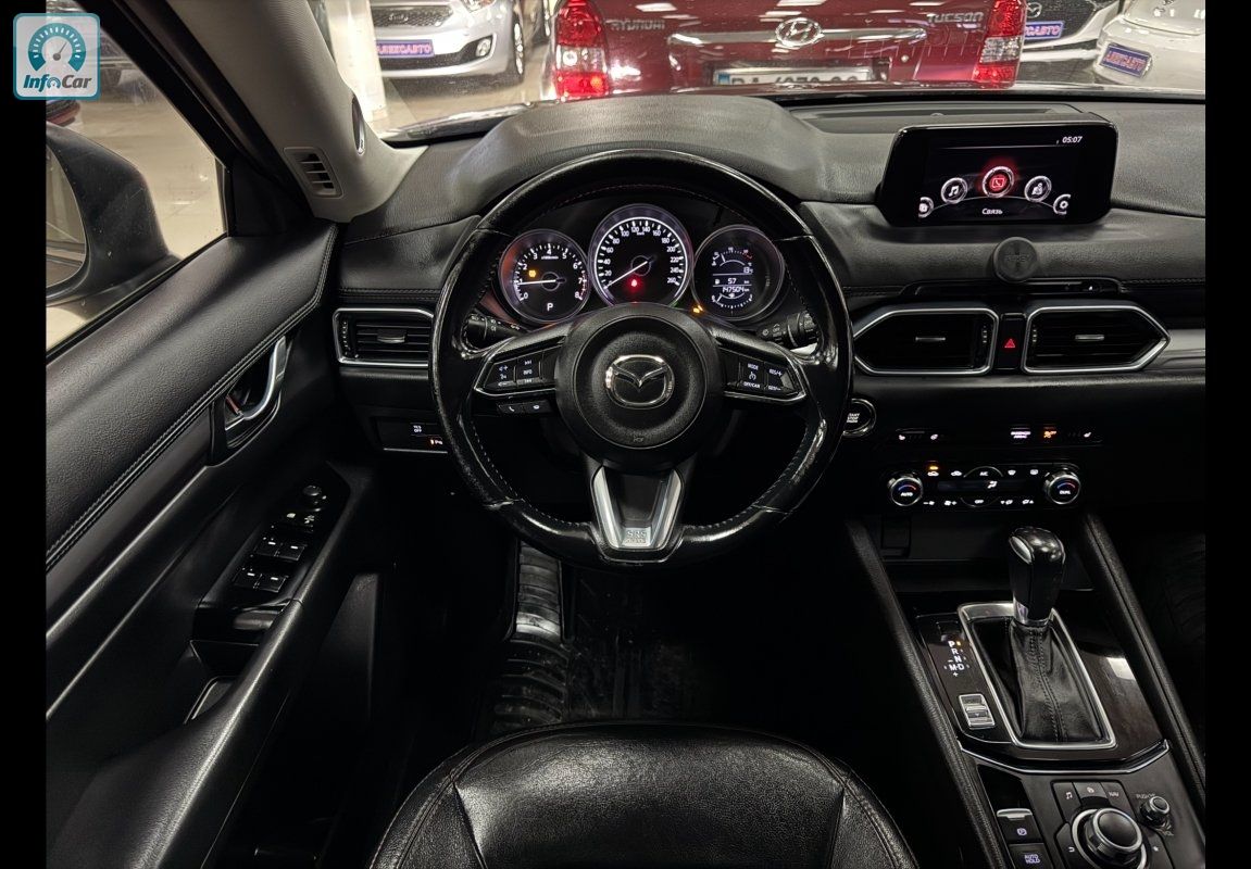 Mazda CX-5 2.5і 16V 6АКПП 2018 р.в. (194 к.с.) , шкіряний салон, круїз контроль, 2-х зонний клімат контроль, підігрів керма, підігрів сидінь, підігрів дзеркал, електро регулювання дзеркал, сервопривід дзеркал, електро скло підйомники, мультикермо, підсилювач керма, регулювання керма по висоті, електро регулювання сидінь, пам’ять сидінь, датчик дощу, датчик світла, денні ходові вогні, LED, протитуманні фари, омивач фар, центральний замок, круговий парктронік, система безпечного паркування, система контролю мертвих зон, штатна мультимедійна аудіосистема, Bose, Bluetooth, GPS, ABS, ESP, Airbag, режими керування (Sport, Normal) , привід - передній, вид палива - бензин, витрата палива - 7.1л/100км. Максимальна швидкість - 195 км/год.
