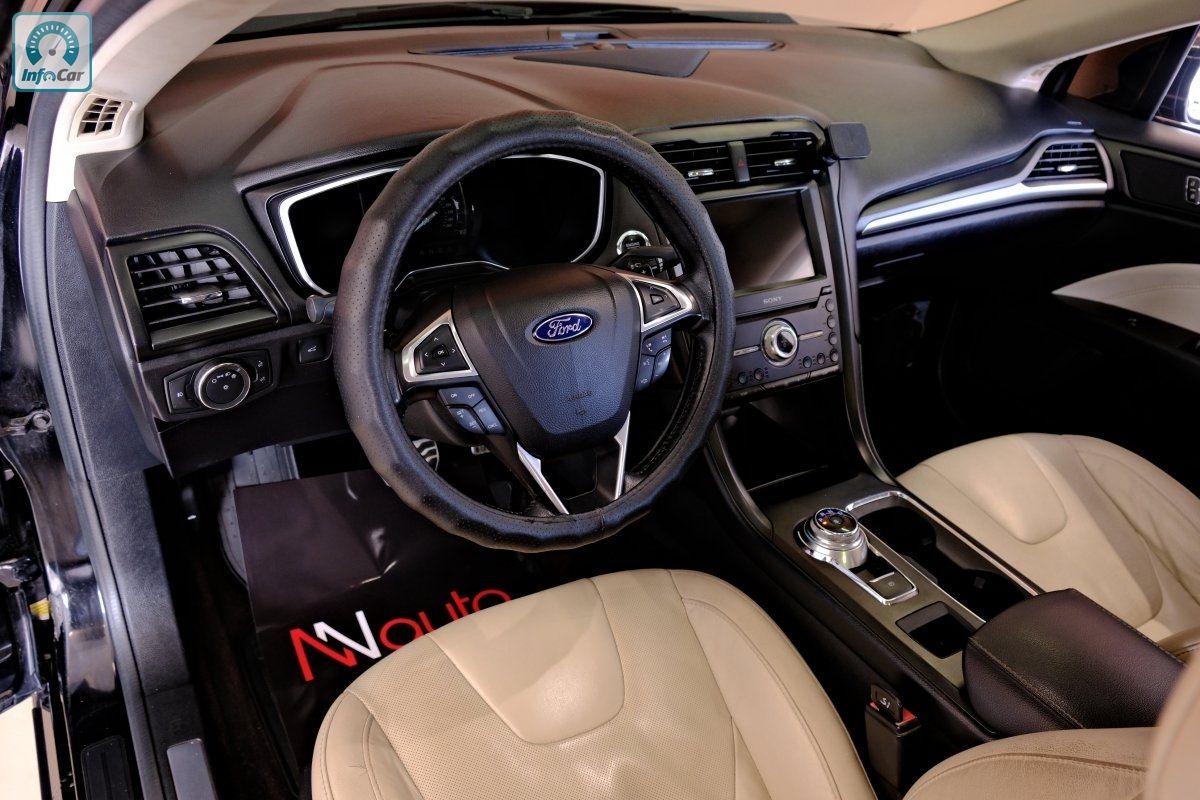 Безпека: ABD, ABS, ASC, ASR, DSC, EBD, ESP, VSC, Іммобілайзер, Ксенонові фари, Подушка безпеки, Сигналізація, Центральний замок, Комфорт: Бортовий комп., Датчик дощу, Датчик світла, Електропакет, Електроприв. дзеркал, Електроприв. скла, Електроприв. сидінь, Клімат-контроль, Круїз-контроль, Люк, Мультируль, Парктронік, Підігрів дзеркал, Підігрів сидінь, Підсильювач керма, Шкіряний салон, Мультимедіа: CD, DVD, MP3, R-камера, Акустика, Магнітола, Сабвуфер, Система навігації GPS, Стан: Не битий, Не фарбований, Інше: Литі диски, Тонування, Ford Fusion Titanium — стильний та комфортний седан бізнес-класу з відмінною динамікою та оснащенням. Оснащений надійним бензиновим двигуном 2.0 EcoBoost (245 к.с.) та автоматичною коробкою передач. Багата комплектація Titanium: шкіряний салон, підігрів сидінь, двозонний клімат-контроль, камера заднього виду, парктроніки, безключовий доступ, мультимедіа з великим екраном, преміальна акустика Sony. Просторий салон і місткий багажник. Комфортний, безпечний і представницький автомобіль для щоденних поїздок.