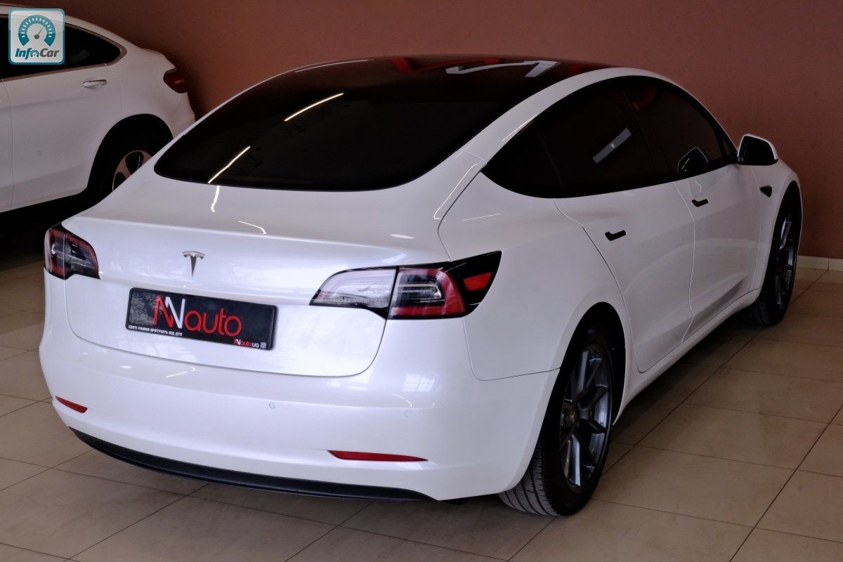 55кВт Безпека: ABD, ABS, ASC, ASR, DSC, EBD, ESP, VSC, Іммобілайзер, Ксенонові фари, Подушка безпеки, Протитуманні фари, Серворуль, Сигналізація, Центральний замок, Комфорт: Бортовий комп., Датчик дощу, Датчик світла, Електропакет, Електроприв. дзеркал, Електроприв. скла, Електроприв. сидінь, Клімат-контроль, Круїз-контроль, Люк, Мультируль, Парктронік, Підігрів дзеркал, Підігрів сидінь, Підсильювач керма, Шкіряний салон, Tesla Model 3 2021 року з батареєю 55 кВт·год — сучасний електричний седан із мінімалістичним дизайном та високими технологіями. Автомобіль оснащений електродвигуном потужністю близько 204 к.с., заднім приводом і автоматичною трансмісією. Розгін 0–100 км/год займає приблизно 5, 6–5, 9 с, а максимальна швидкість сягає близько 209–225 км/год. Запас ходу на одному заряді становить близько 300 км. Салон відрізняється великим сенсорним дисплеєм, автопілотом Tesla та сучасними системами безпеки.Увага! Не телефонуйте на номери з кодами 090, 080, 070 чому?