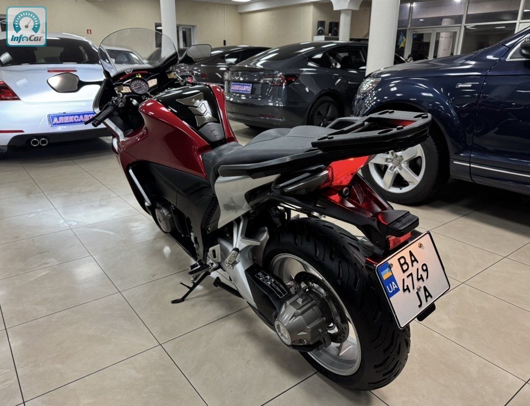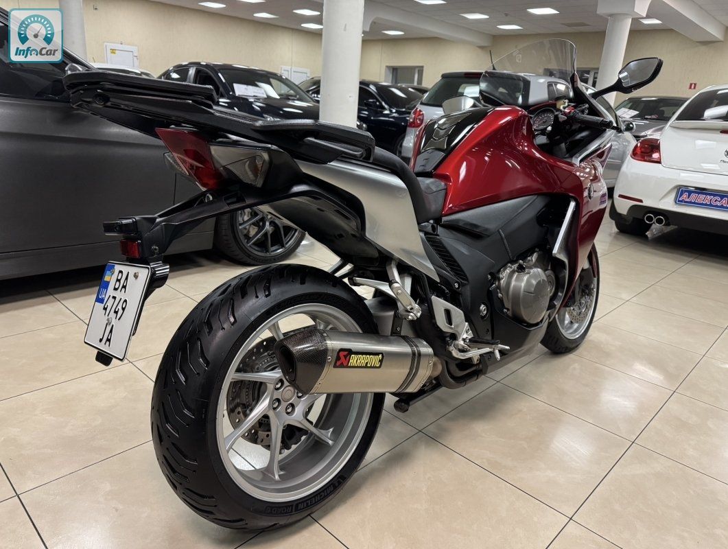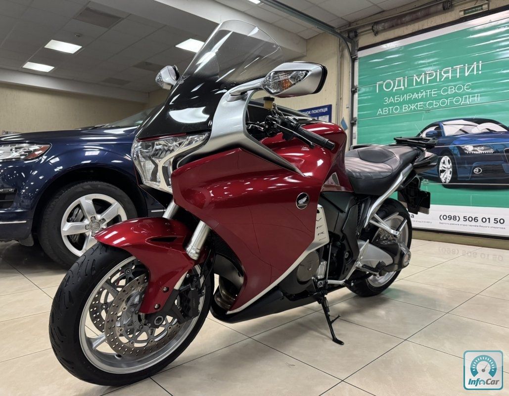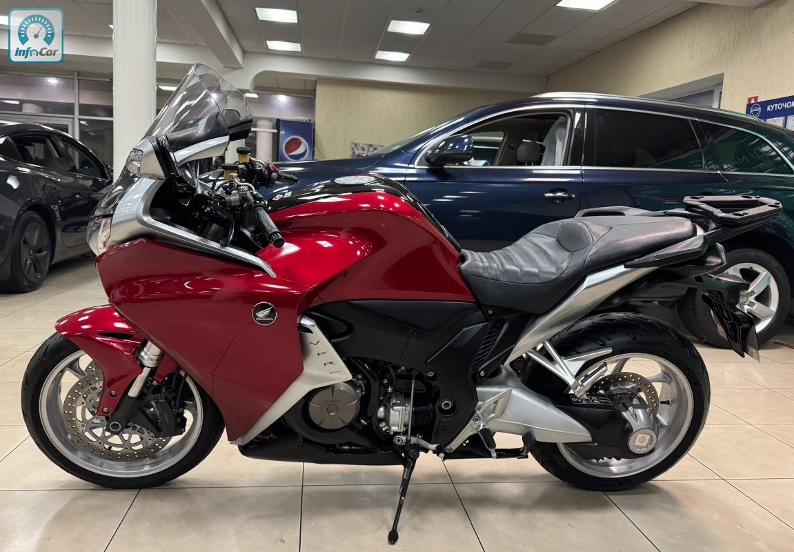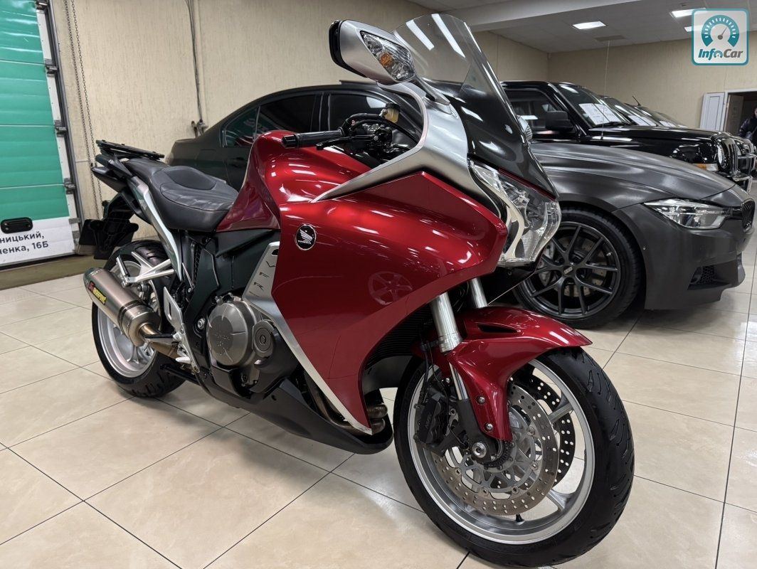 Honda VFR1200 1.2і 16V 6МКПП 2011 р.в. (170 к.с.) , мотоцикл розроблений з урахуванням ключових переваг попередників, які відмінно зарекомендували себе спортивно-туристичних моделей VFR. У гонитві за найкращими характеристиками керованості та реакції VFR1200 вдалося впровадити новітні технології в сфері гоночних мотоциклів. Унікальний двигун і неперевершений рівень керованості ставить новий VFR1200 вище не тільки своїх попередників, але і всіх конкурентів у своєму класі, доступних в даний час.