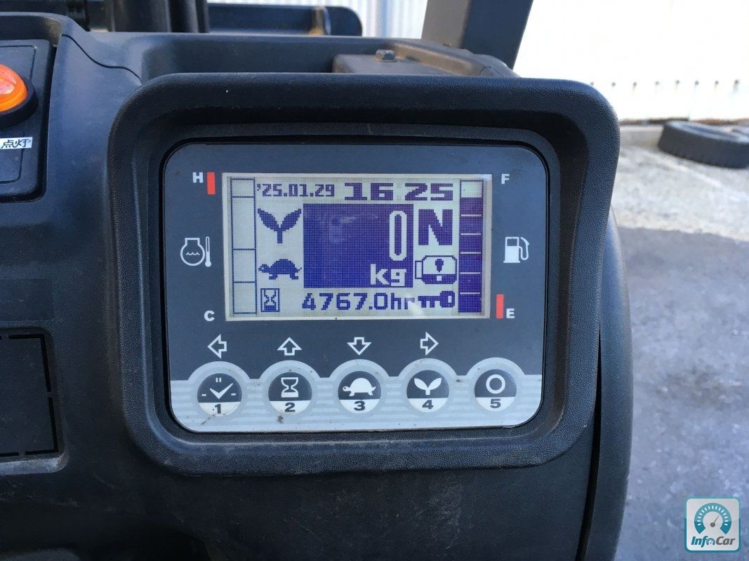 Вилочний автонавантажувач TCM (Nissan) , напрацювання 4766 мотогодин. Модель: FGE15T5. Номiнальна вантажопідйомність 1, 5 тонни. Максимальна висота підйому вантажу 3 метри. Щогла двохсекційна (duplex) яка не втрачає вантажопідйомності при висоті підйому. Двигун газ-бензиновий, з заводським газовим обладнанням, завдяки чому автонавантажувач у теплу пору року можє запускатись вiдразу на газу, без прогріву системи на бензині. 2018 рiк (напрацювання 4766 м/год) . Меню перекладено англійською мовою для зручності. Коробка перемикання передач надiйна i найпоширенiша на данний час - гiдромеханiка (автоматична із гідротрансформатором) . Обладнаний найсучаснішим двигуном, економічним інжекторним Nissan GK21. 4-циліндровий, робочим об'ємом 2.1 літра і потужністю 48 к. с. який славиться своєю надійністю і невибагливістю і без змін встановлюється на автонавантажувачах по сьогоднішній день і головне ремонтопридатний. Колеса 10 діаметра на ведучiй осі, що покращує прохідність автонавантажувача і збільшує його кліренс.Увага! Не телефонуйте на номери з кодами 090, 080, 070 чому?