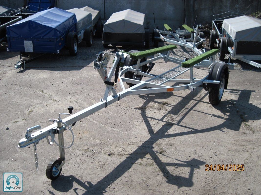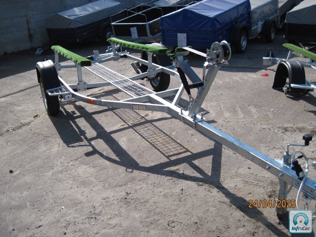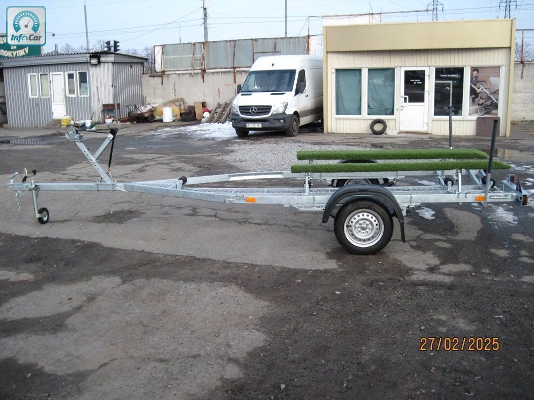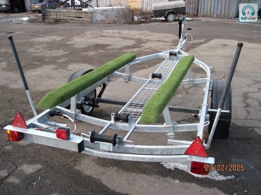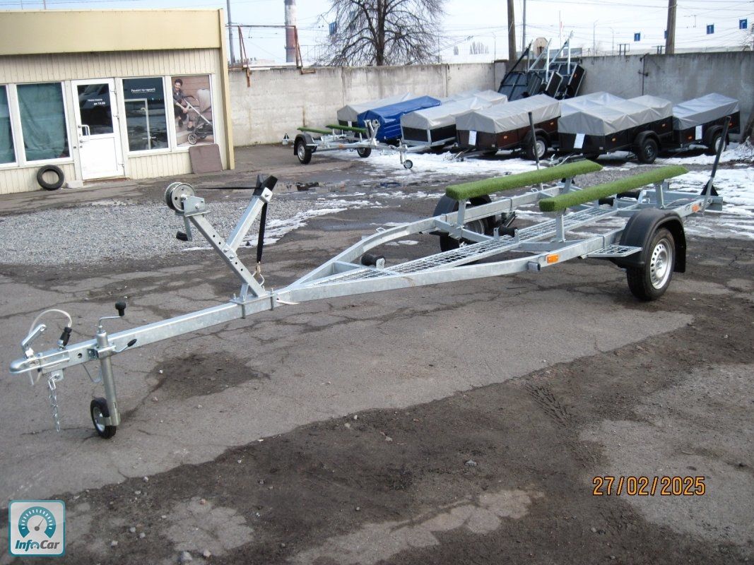 Човновий оцинкований причіп V0 4214=41000грн. Ціна вказана без коліс . Можливий продаж на б\у колесах плюс 2500грн=43600грн, і нові колеса плюс 4200грн.=45300грн. Для перевезення човна типу "Казанка", "Прогрес" або гумового човна. Довжина до носоприємника 4, 6 м. Можливість зміни положення осі. На ресорній підвісці AL-KO (Німеччина) , амортизатори Al-Ko, маточина KNOTT з дворядним не обслуговуючим підшипником, розрахованим на тривалий термін служби. Повна маса за паспортом 750 кг. Рама з квадратної труби 40 х 60мм. Носоприємник, лебідка, опорне колесо, опорні бічні лижи, панель з задніми ліхтарями зйомна, закатний ролік. (067) 240-18-47 (050) 346-74-83. р. КИЇВ, вул. ДРАЙЗЕРА-1. VO 3013 4, 3 метровий, до носоприємника 3, 4 м = 32300грн без коліс.VO 3413 4, 7метровый, до носоприємника 3, 8м = 32600грн без коліс.Увага! Не телефонуйте на номери з кодами 090, 080, 070 чому?
